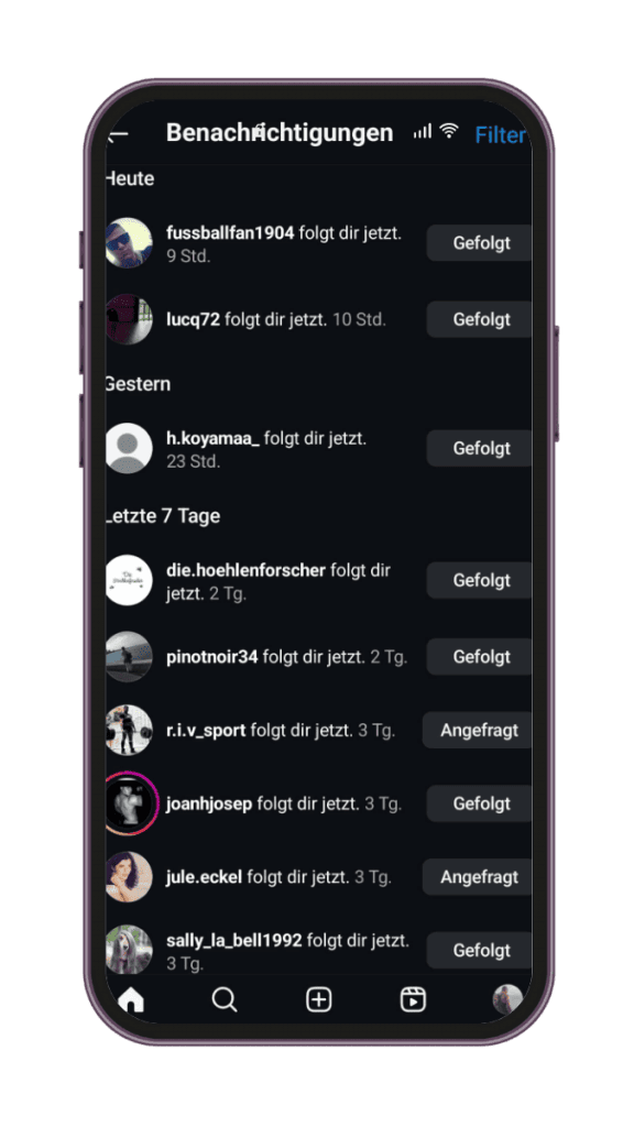 Um Dich bei Deiner Zielgruppe bekannt zu machen, folgen wir nicht nur den Profilen, sondern interagieren auch mit deren Content. Dadurch schaffen wir nicht nur Vertrauen bei ihnen, sondern erreichen auch, dass Instagram Dein Profil organisch ähnlichen Profilen vorschlägt. Die Erfahrung hat gezeigt, dass sich alleine durch die Interaktion von instaLEAD+ mit anderen Profilen, Menschen auf dich aufmerksam werden und dich aus heiterem Himmel von sich aus anschreiben.